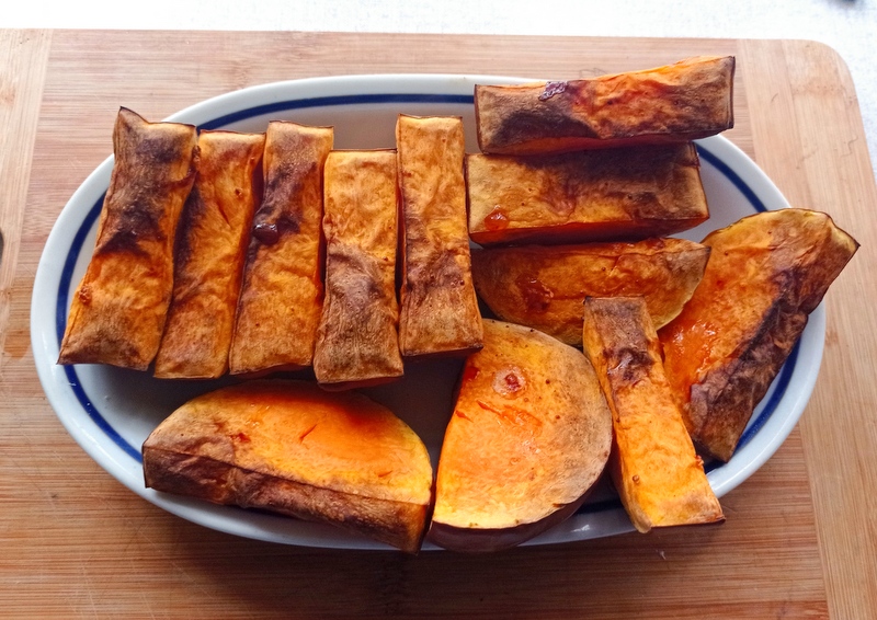 - Rásorakoztattam a tökszeleteket, úgy, hogy ne érjék egymást.